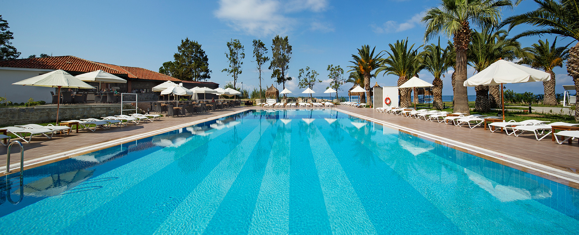 | Комментарии к бассейну и горкам | Два открытых бассейна с пресной водой: 300 кв.м, подогревается с 15.03 по 30.03. 264 кв.м, без подогрева. Время работы бассейнов: 08:00-19:30. |