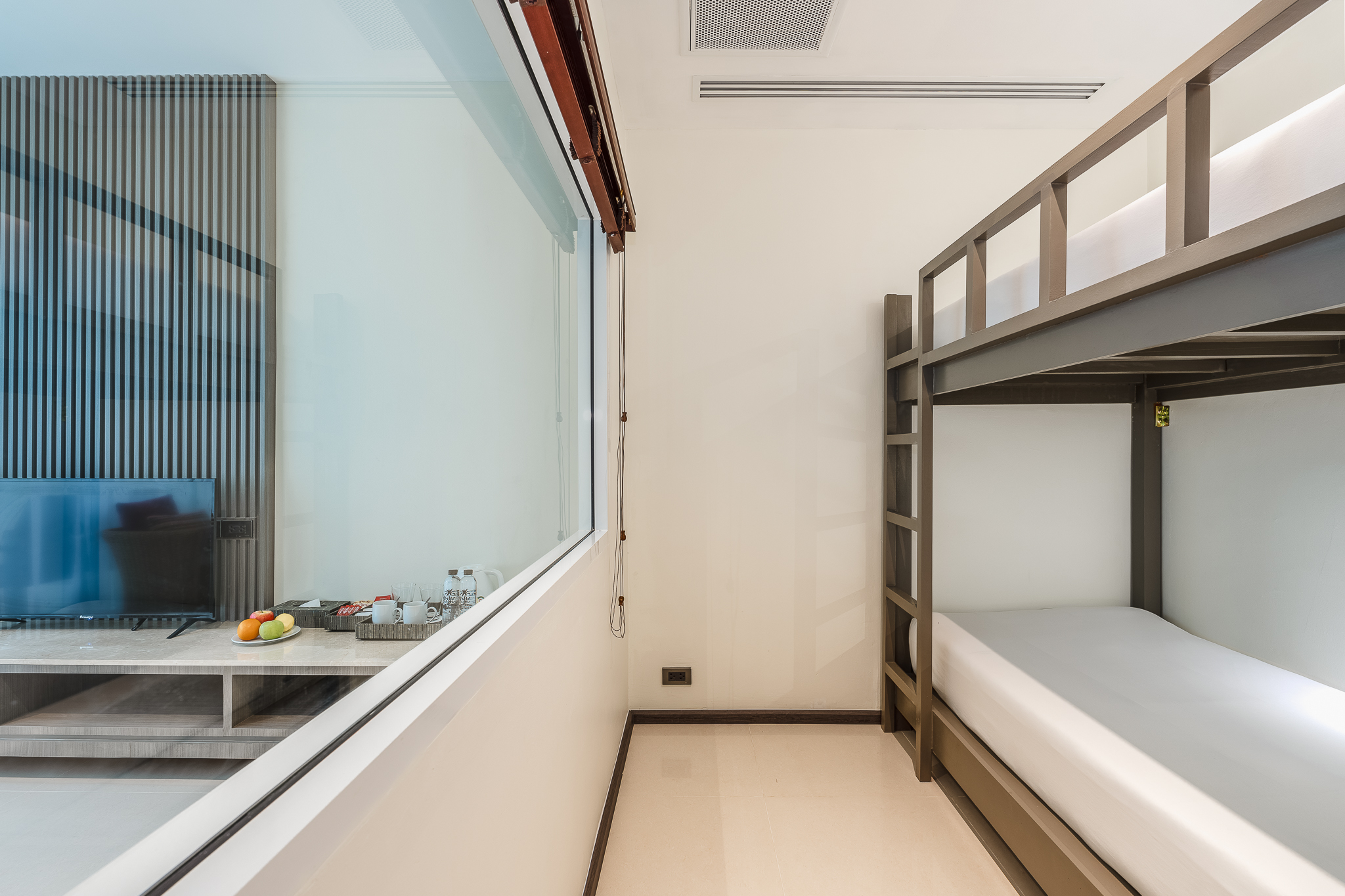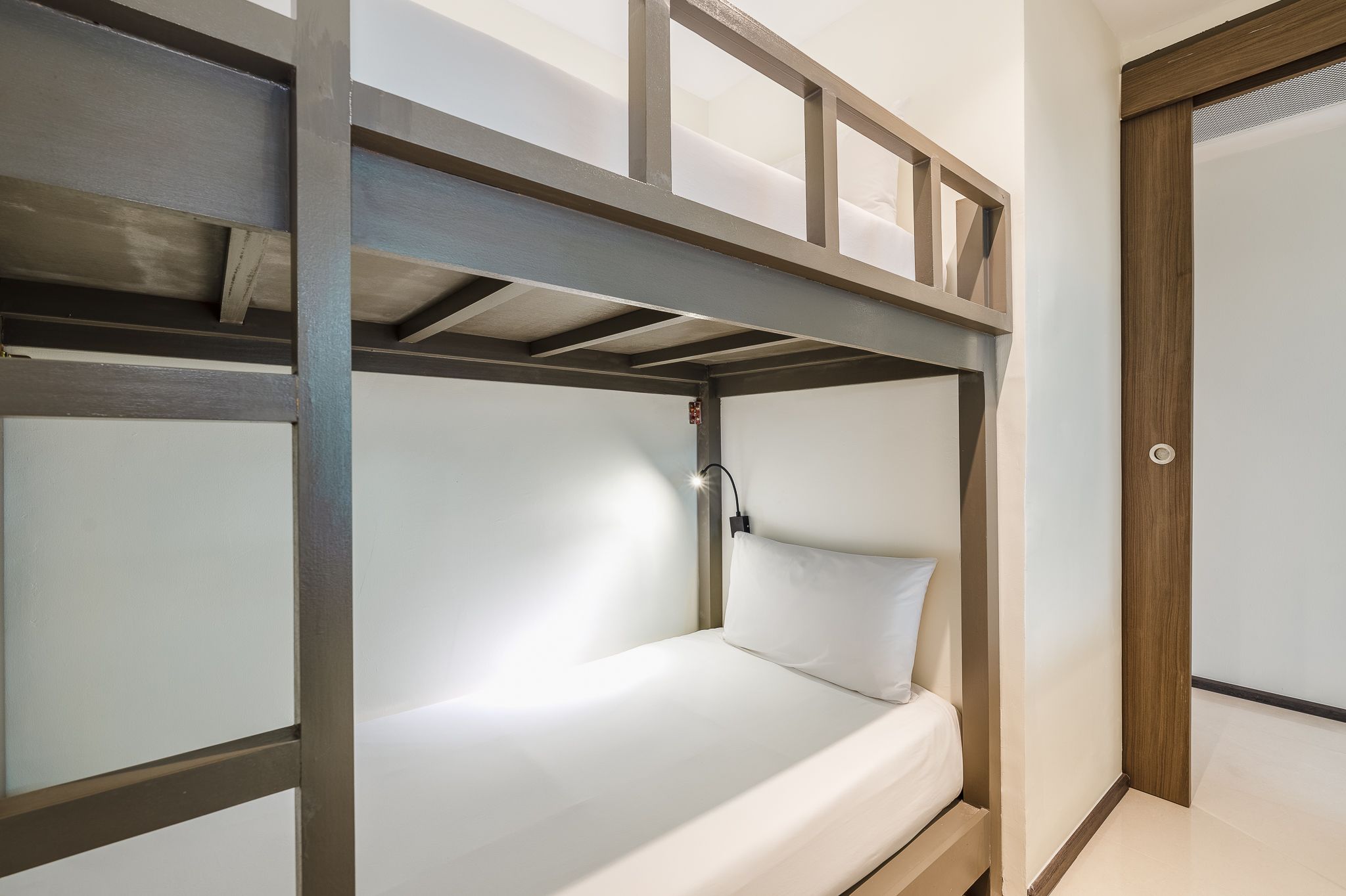 Кровати: 1 двуспальная, Двухъярусная кровать