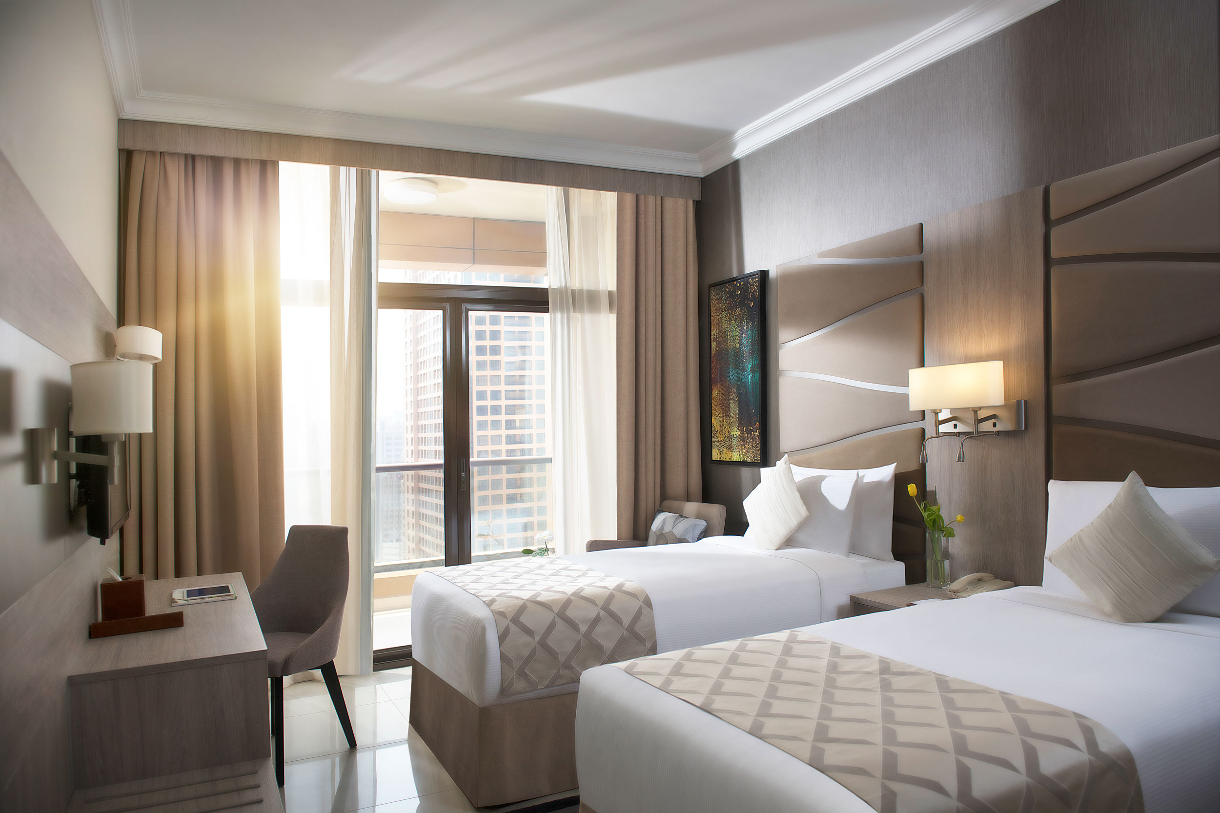 Отель предлагает комфортабельные, стильные, роскошные номера в сочетании с исключительным сервисом и отличными удобствами. Это идеальное место для проживания семей. Расположенный в самом сердце Нового Дубая на улице Шейх Зайед, с удобным доступом к Абу-Даби и Шардже, отель находится всего в 1 минуте от станции метро Dubai Internet City, в 20 минутах от Всемирного торгового центра Дубая, в 30 минутах от Международного аэропорта Дубая и в 25 минутах от Старого Дубая.